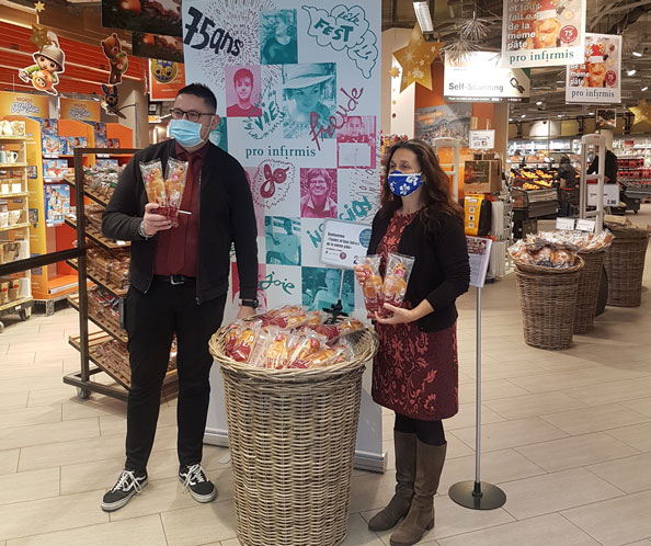 Pro Infirmis Freiburg feiert im Jahr 2021 ihr 75-jähriges Bestehen mit mehreren originellen und verbindenden Veranstaltungen im ganzen Kanton. Am Donnerstag, den 3. Dezember 2020, hat Pro Infirmis Freiburg zum Auftakt des Jubiläums zusammen mit der Genossenschaft Migros Neuenburg-Freiburg die Aktion „Aus dem gleichen Teig gemacht” lanciert.
